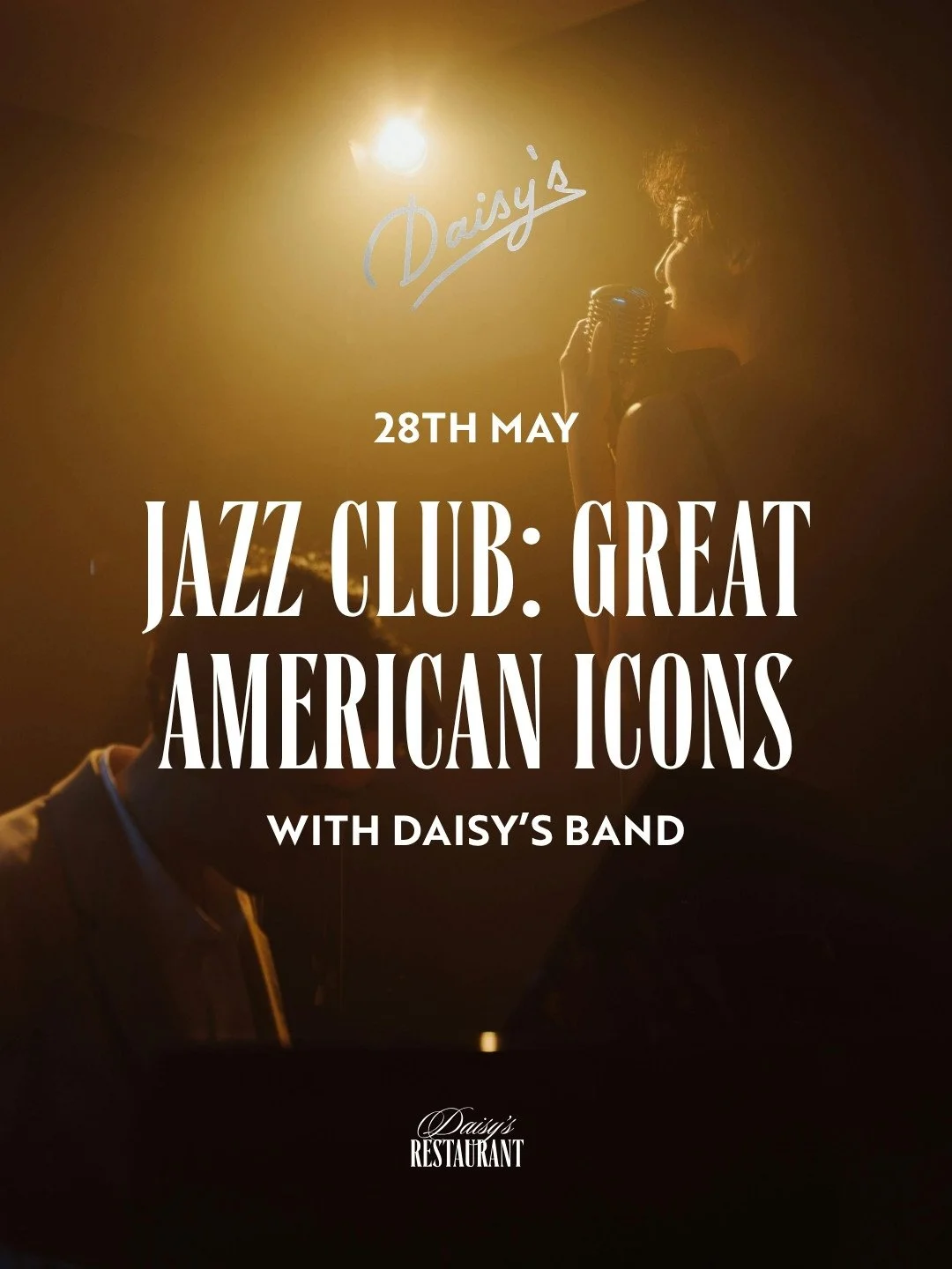 Experience the magic of a classic New York jazz club right here. Daisy’s Band presents "Great American Icons," an evening of high-class music and vintage charm. We are bringing the hits of the titans to the stage—think Duke Ellington, Billie Holiday, and Nat King Cole—delivered with the swing, soul, and improvisational fire that only a live jazz band can provide. Dress to impress and step into a world of timeless cool where every note tells a story of the American dream.